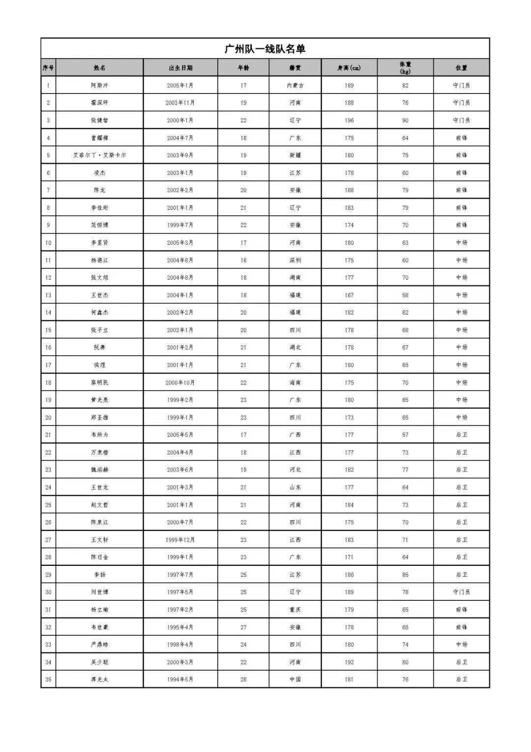 広州は新シーズンのトップチーム選手リストを発表し、姜光泰、魏志浩を筆頭に、顔丁浩、楊立宇、呉紹忠がリストに名を連ね、その他の選手は若手を中心に、鄭芝、張秀偉、李雪鵬はリストに登場しなかった。